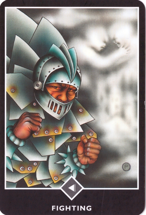 오쇼젠 타로 구름의 원소, '구름 기사 (Knight of Clouds) Fighting (싸움)' 카드