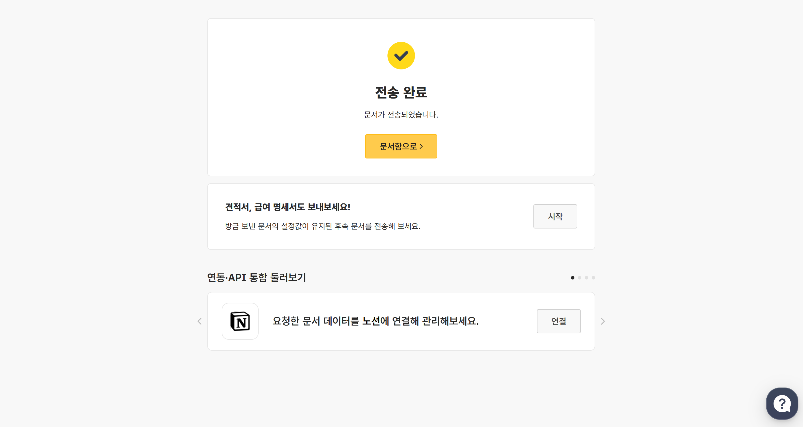 6. 위의 모든 단계를 마치면 다음단계로 진행하여 완료한다. 전송완료가 되면 전화번호를 입력한 담당자에게 카툭으로 전송이 되고 순서에 따라 결개가 이루어지게 된다.
