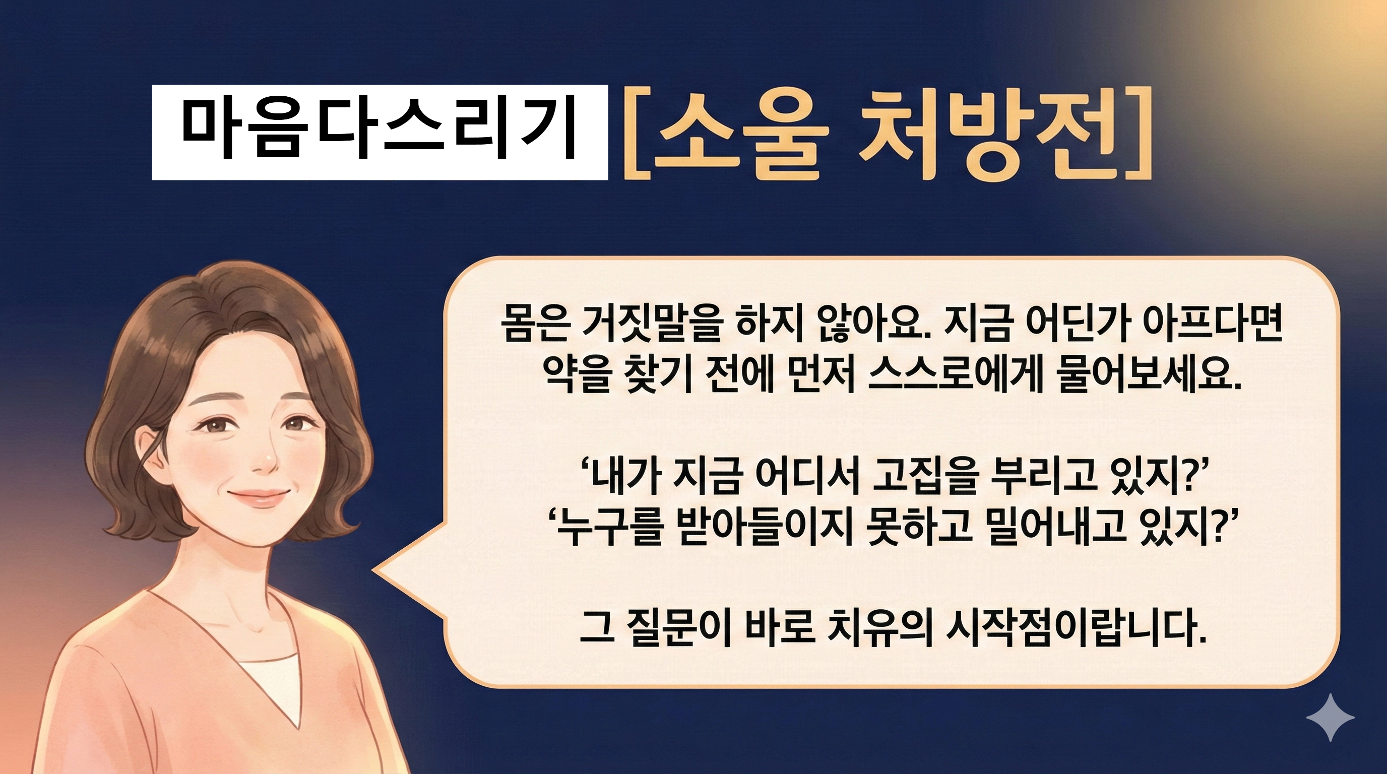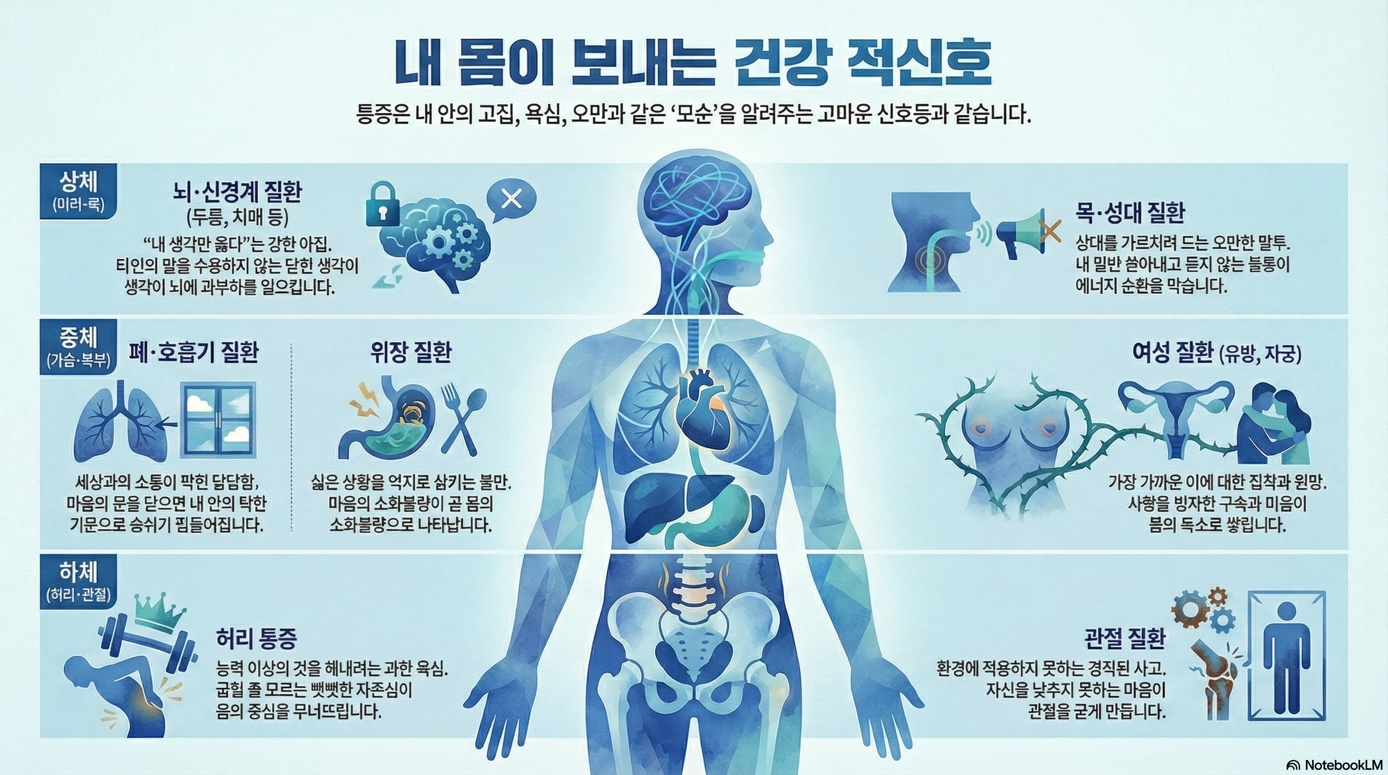 내 앞에 온 모든 인연은 나를 공부시키러 온 귀객임, 마음의 소화불량이 몸의 장애로 전이됨