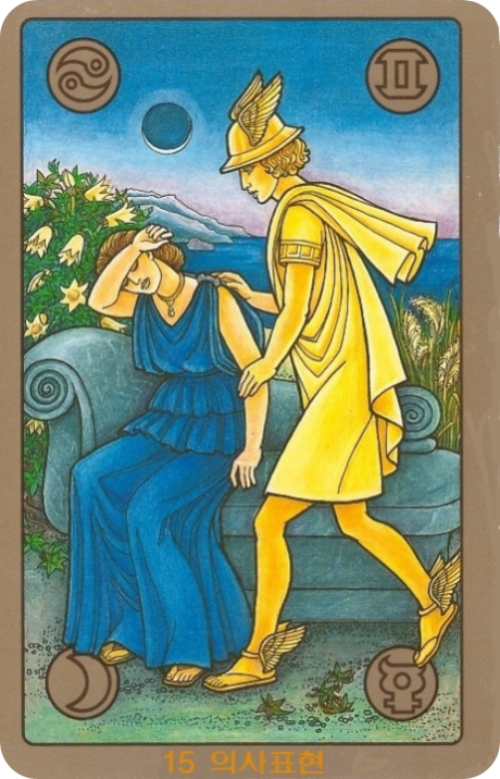 이 '의사표현' 카드를 보면 딱 떠오르는 신화 속 인물들은 바로 '어머니' 카드에서 만났던 대지의 여신 '데메테르'와 '중개자' 카드에서 만났던 신들의 전령 '헤르메스'의 조합입니다.