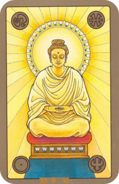 그는 깊은 무의식의 영역과 영성을 관장합니다. 그리고 무엇보다 이 카드의 모습은 '부처(Buddha)' 를 떠올리게 합니다. 세상의 번뇌로부터 벗어나 깨달음을 얻기 위해 명상에 잠기는 부처의 모습은 이 카드의 핵심 의미를 가장 잘 나타냅니다.