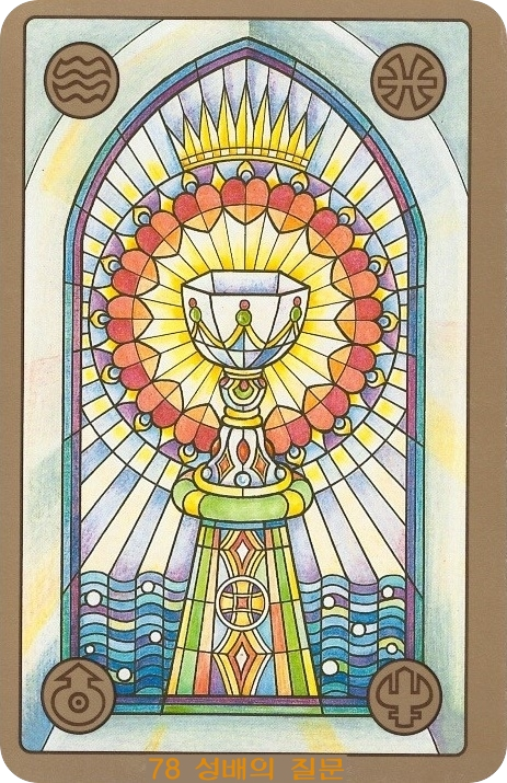 결론적으로 '성배의 질문' 카드는 '혁신적인 사고(천왕성/물병자리)를 통해 현실을 초월한 영적인 영역(해왕성/물고기자리)을 탐구하고, 그 속에서 궁극적인 진실과 깨달음을 찾으려는 내면의 본능'을 상징합니다.