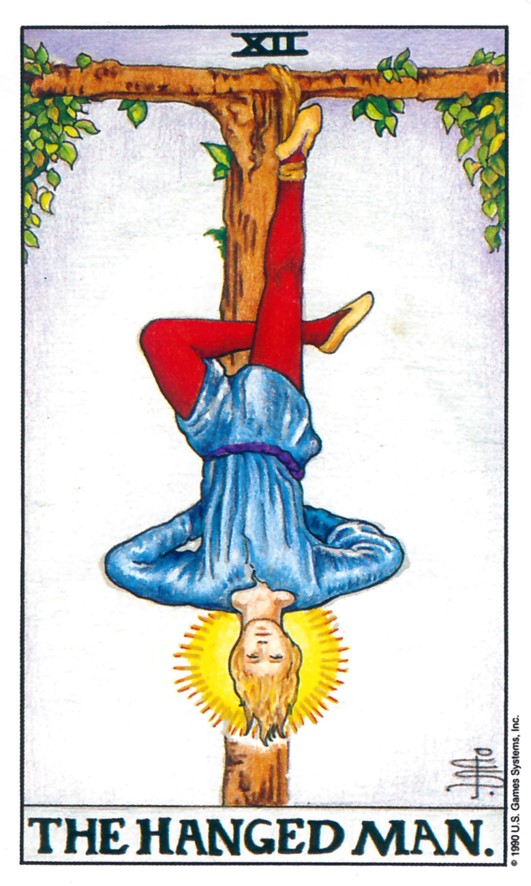 유니버설웨이트 타로카드 12번 행맨, 매달린 남자: 희생, 인내, 역발상, 고통을 참는, 정체된