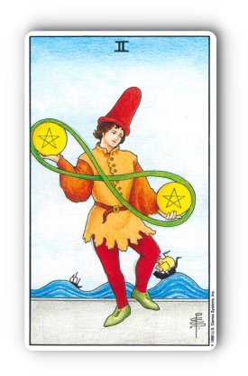 펜타클 2번은 삶의 저글링 마스터! 여러 가지 상황과 책임 사이에서 균형을 잡고 유연하게 대처하는 지혜가 필요합니다.