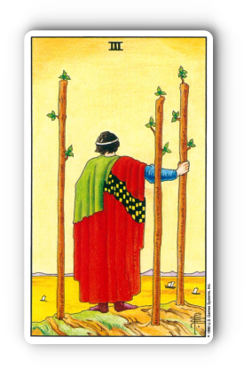 이 카드는 '확장', '성공적인 시작', '미래 지향적인 사고', '협력', '해외 진출', 그리고 '성장'을 상징합니다. 완드 2번에서 계획을 세웠다면, 완드 3번은 그 계획을 실행에 옮겨 구체적인 성과를 내는 단계라고 볼 수 있어요. 심리학적으로는 '긍정적 재평가(Positive Reappraisal)'를 통해 미래에 대한 확신을 갖는 상태와 유사합니다.