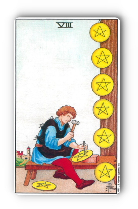 장인의 길! 펜타클 8번, 땀과 노력으로 피어나는 숙련의 꽃 🌸