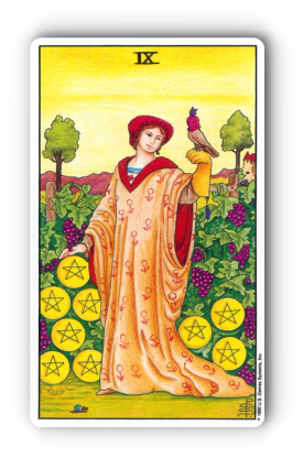 펜타클 9번은 당신의 땀과 노력으로 일군 빛나는 성공을 축하하는 카드! 물질적, 정신적 풍요를 마음껏 누리며 독립적인 삶을 즐기세요.