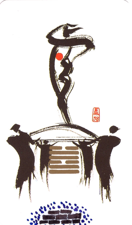 🙆♀️ 오늘은 주역타로 58번 태괘(兌卦, 澤澤兌 / 중택태) 카드를 풀어드릴게요. **태(兌)**는 ‘기쁨, 소통, 즐거움’을 뜻하며, 서로 웃고 나누며 교감하는 에너지를 상징합니다. 즉, 소통과 즐거움, 교류의 힘으로 길이 열리는 시기예요.